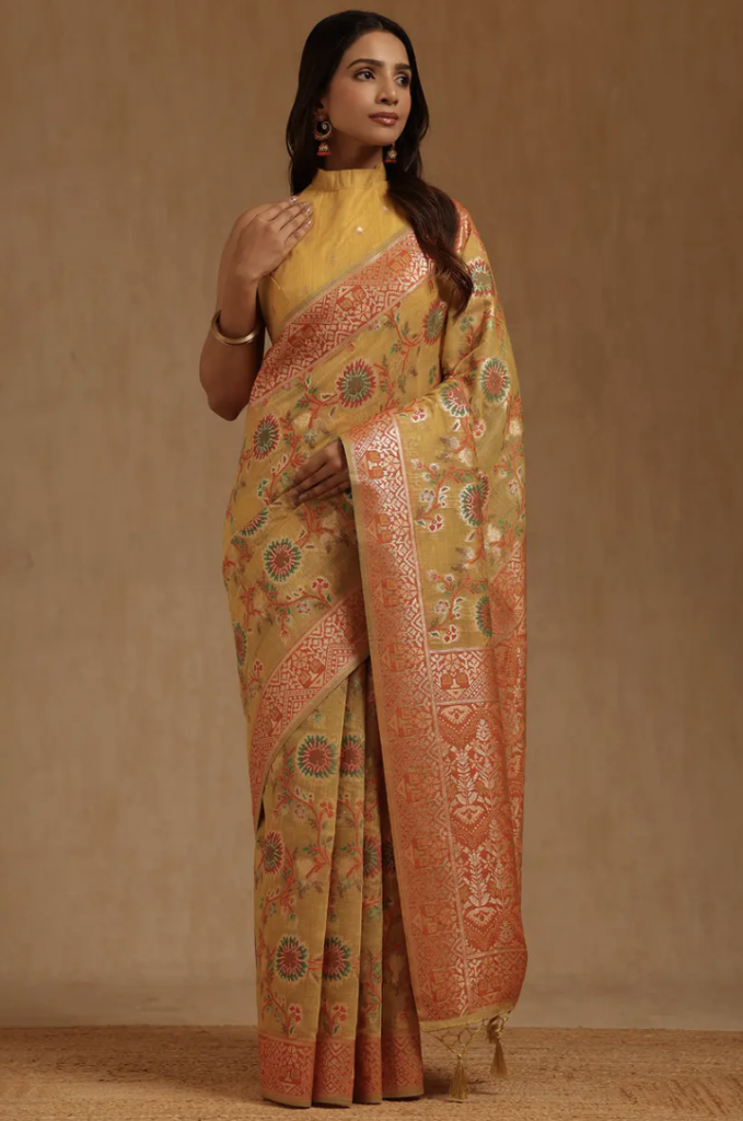 Marigold Yellow Pure Cotton Real Zari Saree – Shanti Banaras
