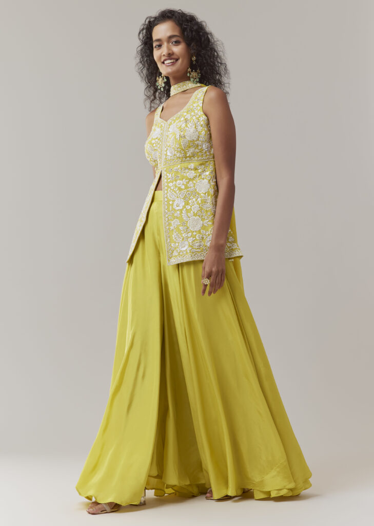 Yellow Resham Embroidered Kurta Palazzo Set – KALKI