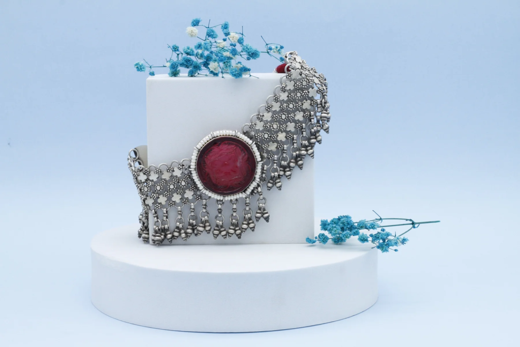 If silver is more your rhythm this season, Sangeeta Boochra’s Vividh Collection is hitting all the right notes. A particular standout is the Red Stunning Silver Shiza Choker—a handcrafted masterpiece designed to turn heads.