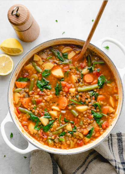 Toss cooked lentils, veggie broth, and fresh spinach into a pot, season with garlic, cumin, and black pepper, and let it simmer for a few minutes. This cozy bowl is packed with fiber and iron, goes from pantry to plate in minutes, and brings all the warmth without the effort.