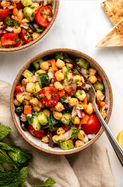Drain, mix, and munch—this refreshing salad combines chickpeas, crunchy chopped veggies, and a zesty olive oil–lemon dressing. It’s energizing and protein-rich, completely no-cook, and great for meal prep or picnics.