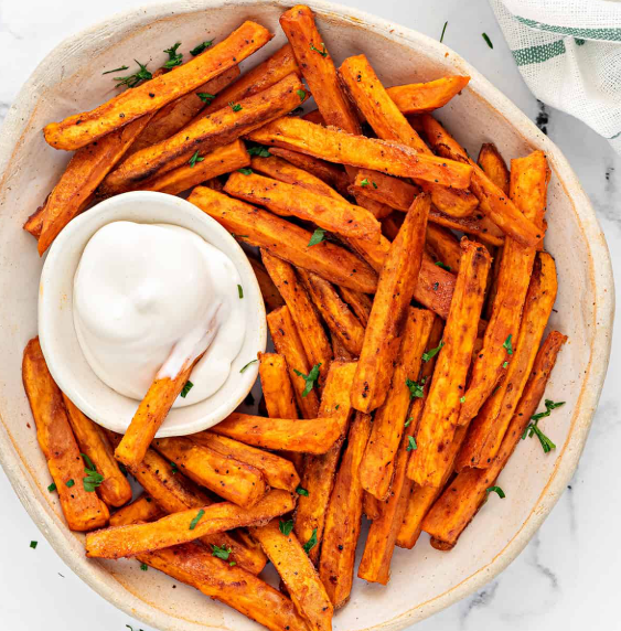 Pop frozen Blue Tribe’s sweet potato fries in the air fryer or oven, and in five minutes you’ve got a naturally sweet, satisfying side that’s kid-approved, adult-loved, and pairs perfectly with anything from hummus to plant-based nuggets.