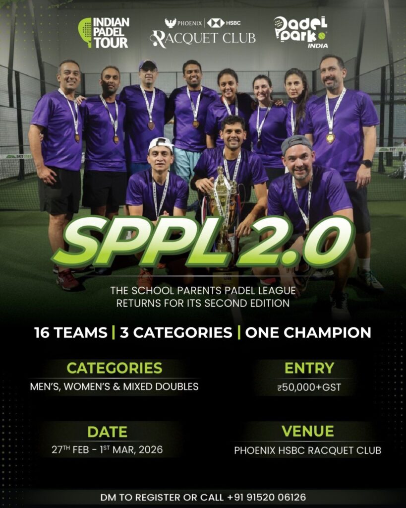 Mumbai’s sports scene gets a competitive spin with SPPL 2.0 under the Indian Padel Tour banner. Hosted at Phoenix HSBC Racquet Club, this three-day league blends school pride with Davis Cup–style team play. Featuring 16 teams competing across Men’s, Women’s and Mixed Doubles categories, SPPL 2.0 delivers spirited rallies and community-driven camaraderie.