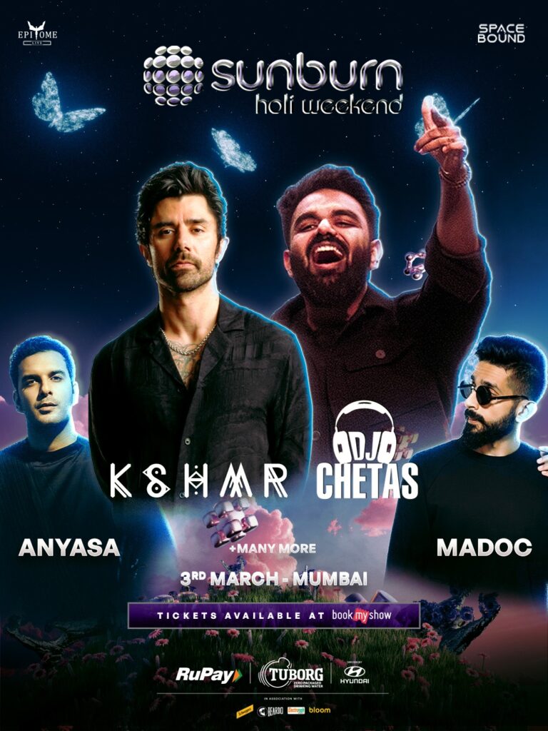 Sunburn Holi transforms Mumbai into a pulsating playground of beats and colour, blending India’s most vibrant festival with a high-energy DJ line-up. Headlined by KSHMR, alongside DJ Chetas, Anyasa, and Madoc, expect massive drops, immersive lighting, explosive visuals and clouds of gulal filling the sky.