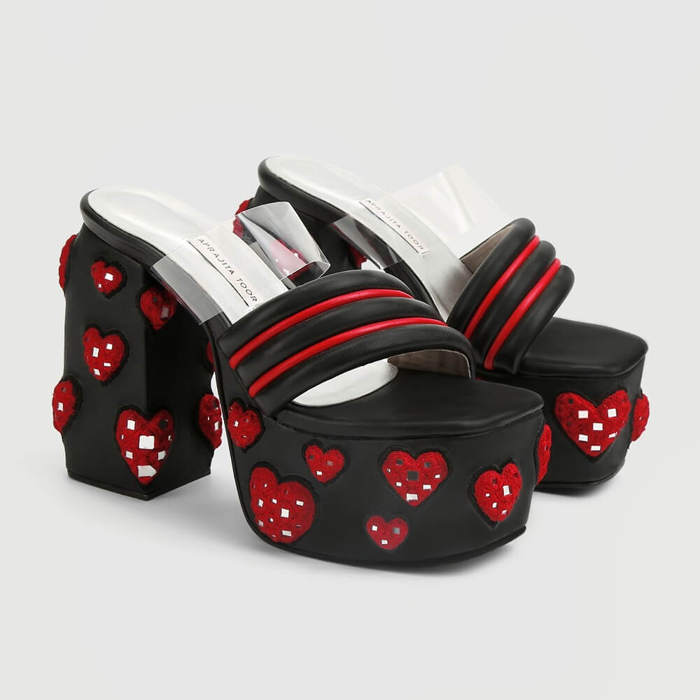 Aprajita Toor’s Qalb platform block heels are where comfort meets statement style. Crafted in a rich red hue, these heels bring a playful yet powerful energy to any Valentine’s look. Whether paired with a flowing dress or a sleek bodycon, the sculptural heel and platform base make them perfect for long evenings filled with celebrations, confidence, and charm.