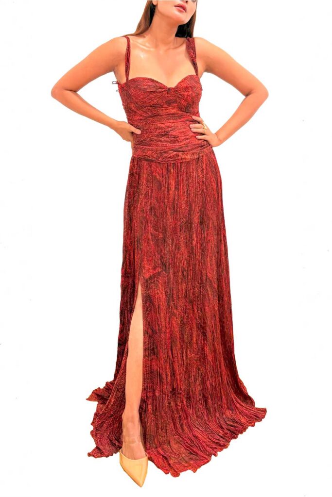 Romantic and refined, Roseroom’s Fuschias of La Perlaire dress captures the softer side of Valentine’s glamour. The red-toned palette paired with delicate detailing creates a look that feels dreamy and feminine. This dress is perfect for those who love understated elegance a piece that speaks softly yet leaves a lasting impression.