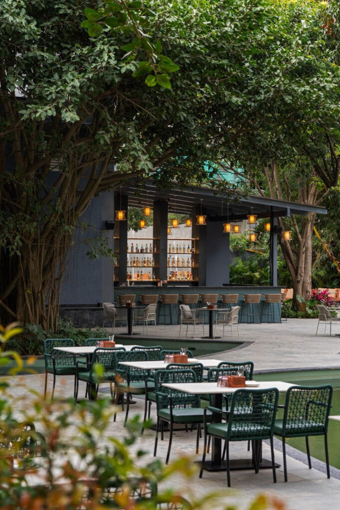A concept-driven space where IPL screenings meet global cuisine and one of the country’s most innovative bar programmes. The cocktail menu is inspired by modes of transit: air, sea, road, and rail, with each drink telling a story through ingredients and presentation.