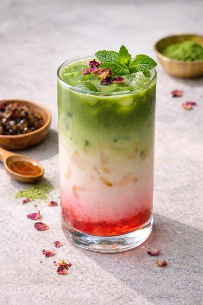 Rose & Gulkand Milk Inspired Iced Matcha – Floral Fusion