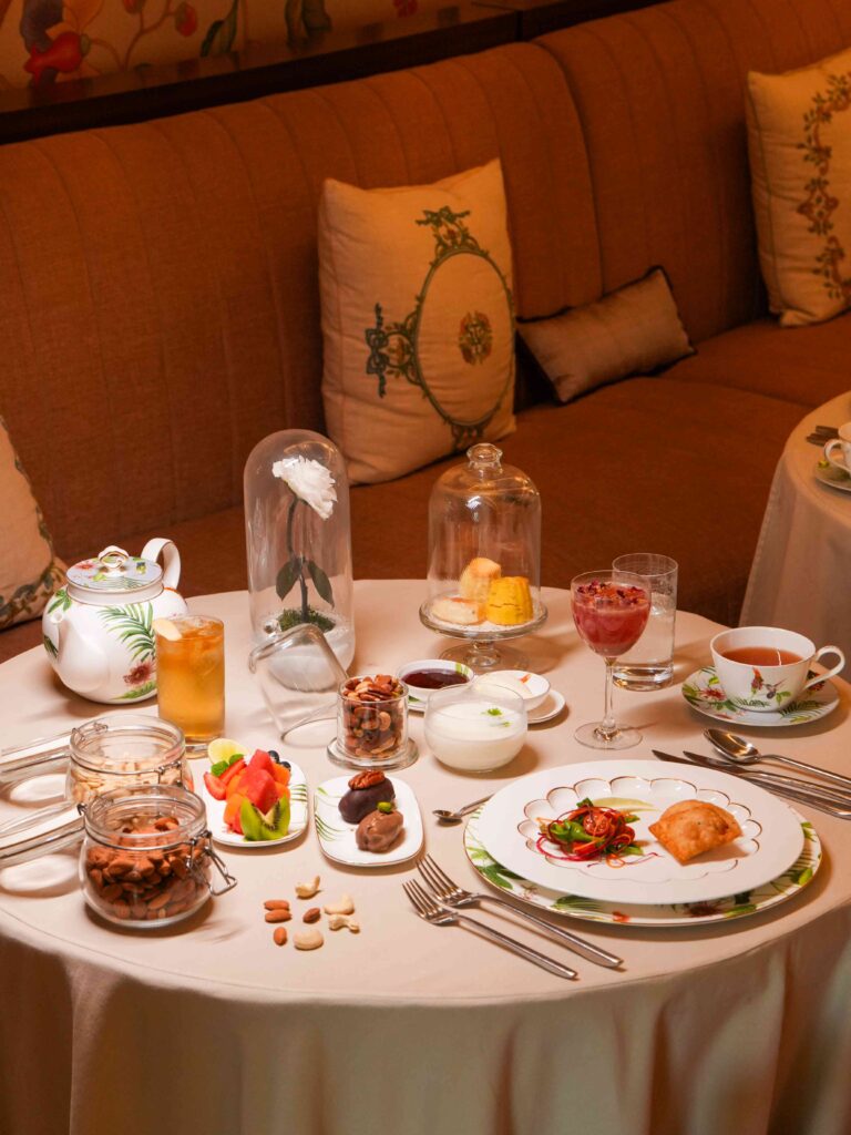 Guests can savour delicacies such as Lamb Empanada and Chicken Tikka Lukmi, alongside vegetarian options like Cottage Cheese Empanada and Wild Mushroom Lukmi. Artisanal bakes Orange & Vanilla Bean Scones, Saffron Pistachio Scones, and Cardamom Madeleines add a graceful finish.