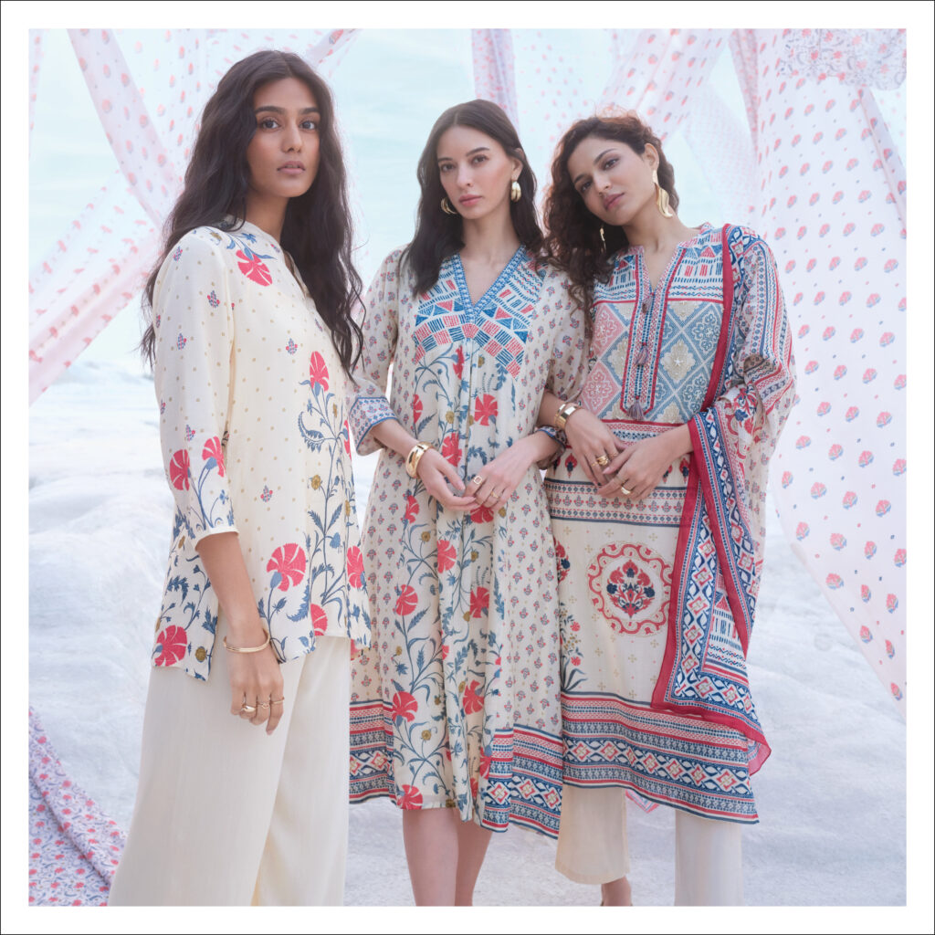 This collection has a curated set of themes including Chintz Collective, Chambray City, Urban Rang, Indigo Hues, Studio Ajrak, and Summer Looms. Each collection promises a fresh perspective on ethnic wear, designed to cater to the modern wardrobe essentials, while staying mindful of seasonal comfort.