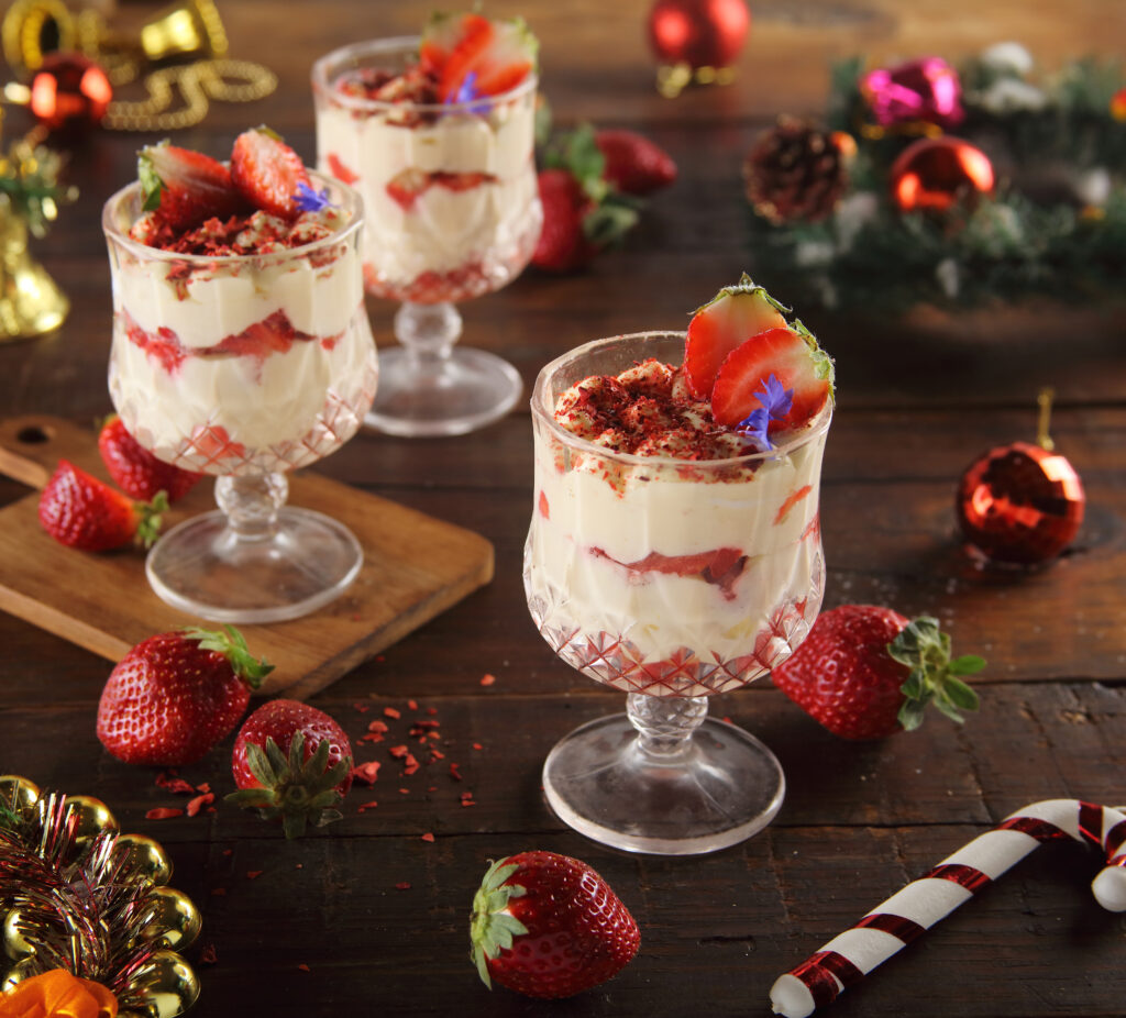 Elegant and comforting at the same time, Scarlett House’s Strawberry Trifle layers perfectly soaked sponge, velvety vanilla custard, and fresh strawberries. Each spoonful feels festive yet balanced, making it an ideal dessert for those who enjoy indulgence without heaviness.