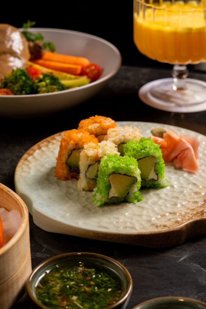 A vibrant sushi experience awaits with maki, nigiri and signature rolls designed around the hues of the Indian flag. Fresh seafood, vegetables and clever use of natural colours make these rolls visually striking yet delicately balanced in flavour perfect for those who like their celebrations global and gourmet.