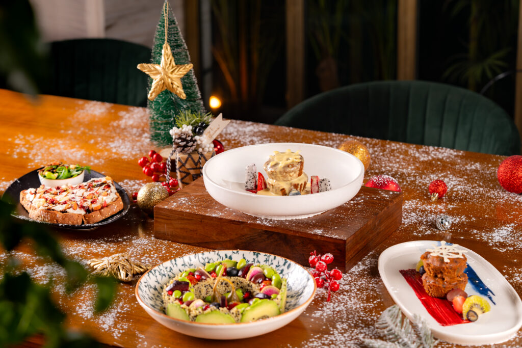 Parisian Café ushers in the holiday season with a festive menu that blends classic Parisian comfort with refined winter flavours. The celebration begins with a velvety Butternut Squash Soup, followed by elegant starters such as Wine-Poached Pear Salad with pecan brittle and Cocktail Shrimps. The mains showcase three thoughtfully curated creations – Pan-Seared Polenta with Ratatouille, Chermoula Grilled Fish enriched with peri-peri butter, and a slow-braised Lamb Shank in aromatic red wine sauce. The experience concludes with their warm Christmas Pudding served with rich bourbon sauce, capturing the charm of a timeless Parisian holiday.
