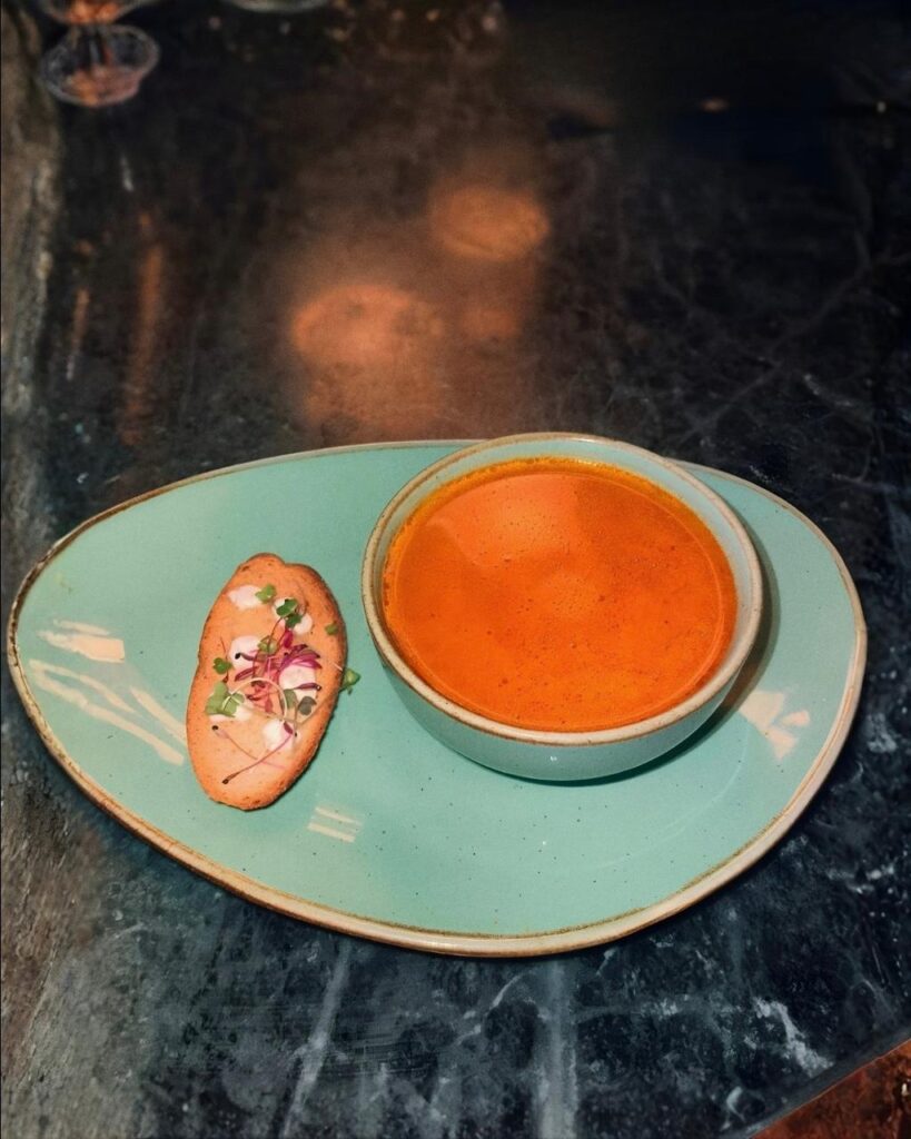 A soothing, aromatic shorba that celebrates the warmth of winter, Kalpaney’s version pairs ripe tomatoes with fresh tulsi for a beautifully balanced bowl. Light yet flavorful, it features spices like black pepper, deghi mirch, and coriander seeds. Served with crispy house-made basil rusk, this shorba feels like a gentle winter embrace.