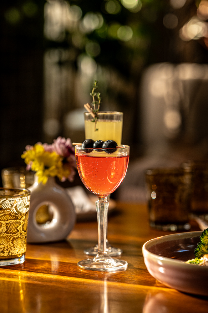 A vibrant blend of vodka, blueberry, elderflower, and lemon juice, this cocktail balances sweetness, florals, and citrus with striking visual flair. Inspired by Africa’s Masai Mara, it’s bold, refreshing, and served at Ophelia.